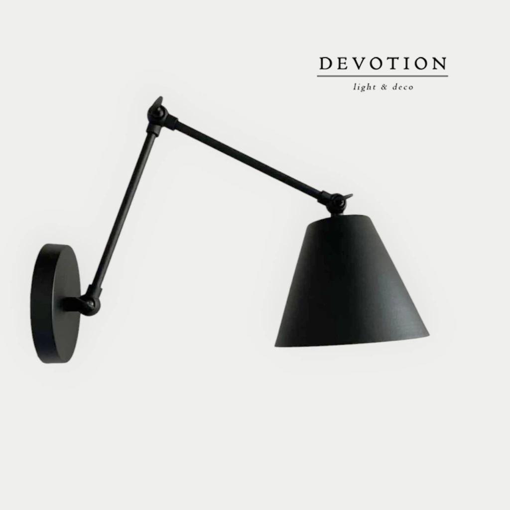 Aplique de pared negro con múltiples movimientos verticales en 3 sectores