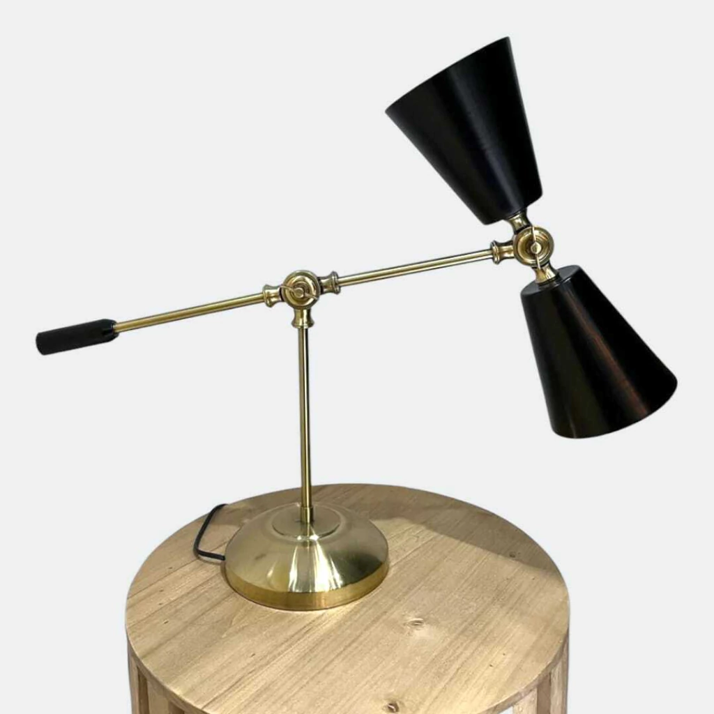 Lámpara de escritorio/mesa de luz 2 luces Negra con dorado mate y movimientos